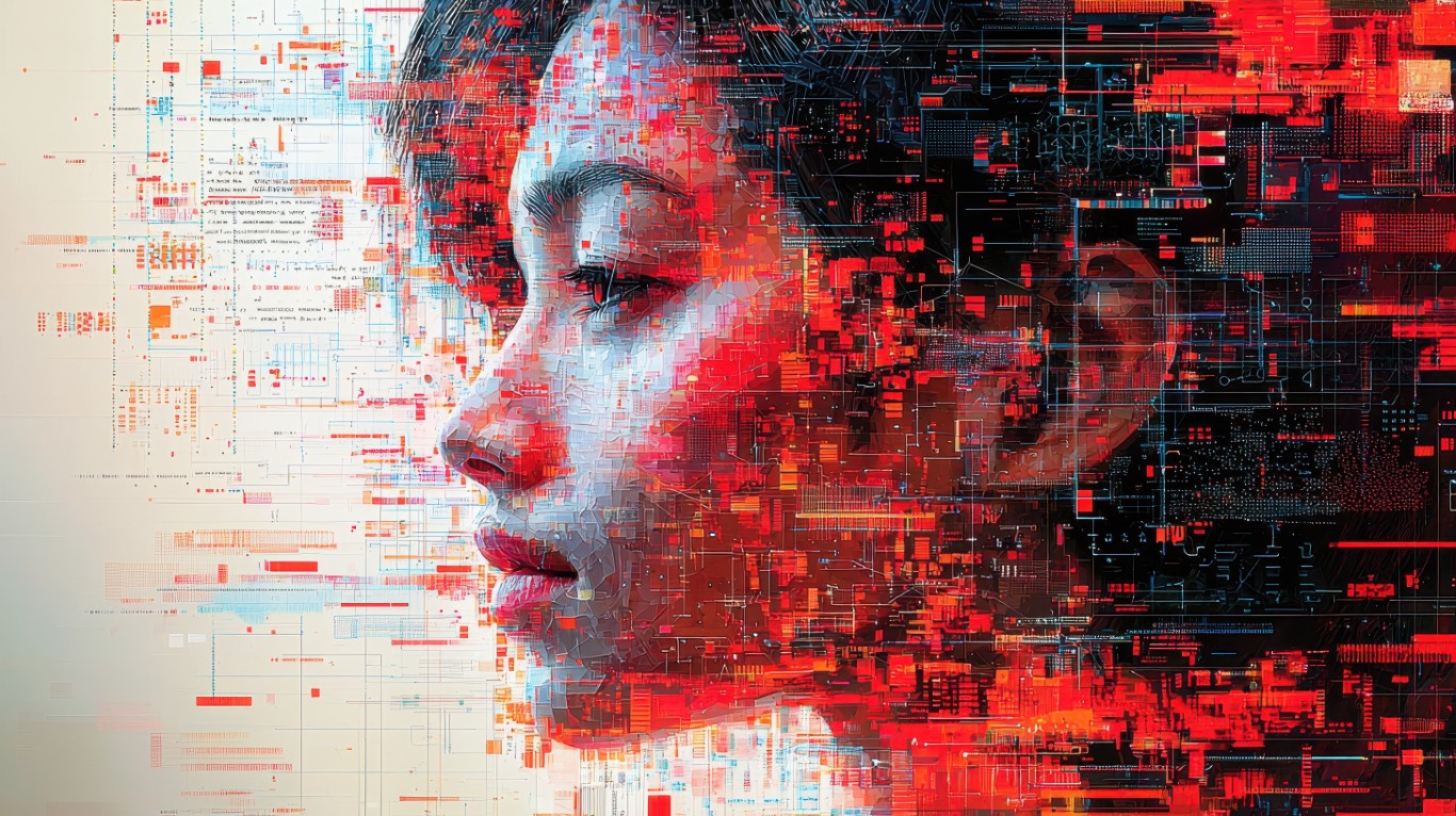 Conceptual illustration showcasing micro LLM architecture with digital elements